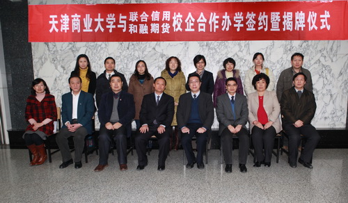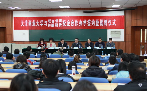 12月7日下午,beat365官网与联合信用管理有限公司、和融期货经纪有限责任公司校企合作签约暨揭牌仪式在3 教110 室隆重举行。这是beat365官网金融学专业继与中诚信集团、光大期货有限公司、中国人民银行天津分行开展紧密型校企合作、银校合作之后,进一步利用社会资源推进专业建设、推动天津社会经济发展的又一举措。校长刘书瀚、联合信用管理有限公司副总裁刘化普、和融期货经纪有限责任公司总经理张文琦先生出席仪式并致辞,同时作为代表签署合作协议、揭牌。仪式由经济学院院长刘小军主持。
