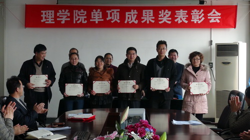首先,理学院党总支书记杨卫疆宣读了“理学院关于表彰 2011 年单项成果奖的决定”,并对在2011 年获得学校及天津市各级各类奖励的教职工进行了通报表扬。学院领导为获得单项成果的 10 个团队及个人颁发了荣誉证书。
