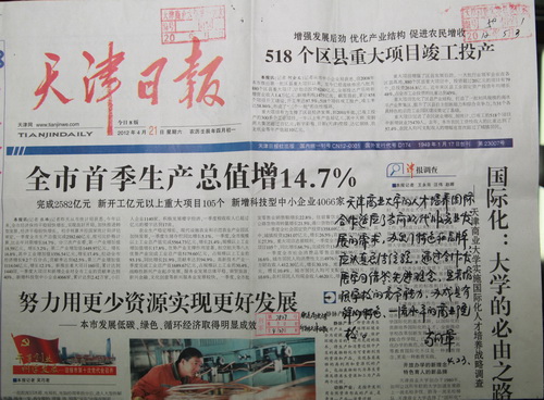 4月21日,《天津日报》在一版显著位置刊发了题为“国际化:大学的必由之路——beat365英国官方网站实施国际化人才培养战略调查”的文章。市委常委、市委教育工委书记苟利军对此作出重要批示:“beat365英国官方网站的人才培养国际合作适应了当前现代服务业发展的需求,办出了特色和品牌,应认真总结经验,通过合作发展学习借鉴先进理念,显著增强学校的竞争能力,办成具有鲜明特色、一流水平的商业院校。”