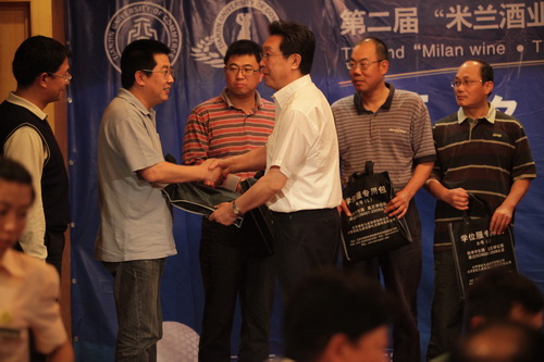 校党委书记陈学奇为获奖校友颁奖