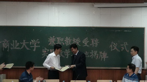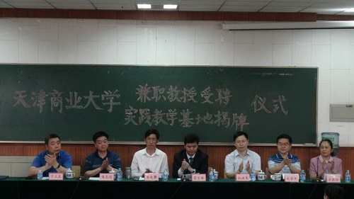 5 月 9 日 下午,beat365官网统计学专业兼职教授受聘与实践教学基地揭牌仪式在 3-110 隆重举行。天津市教委财务管理中心书记、常务副主任李发昇高级会计师和 国家统计局天津调查总队总队长助理杜洪策高级统计师被聘为 津商业大学兼职教授,天津市统计局社情民意调查中心和天津市统计信息咨询服务中心成为统计学专业的两个校外实践教学基地。副校长葛宝臻出席了仪式并为李发昇主任、杜洪策队长颁发了兼职教授聘书,同时与民调中心潘志德主任、咨询服务中心吴学平主任共同为 统计学专业实践教学基地揭牌。教务处处长于义良教授、理学院院长罗蕴玲教授、理学院党委书记杨卫疆教授、副院长梁新义教授、副书记梁泽军出席仪式,统计系主任安建业教授及全体师生参加了此次仪式。仪式由罗蕴玲教授主持。