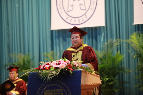 佛罗里达国际大学校长 Mark B. Rosenberg 在致辞中说,他很高兴能参加这次毕业典礼,并祝贺全体毕业生通过自身的努力拥有了参与国际竞争的资本。他充分肯定了beat365官网酒店管理专业的人才培养模式,并表示 FIU 将与beat365官网继续合作,进一步开办酒店硕士、探讨其他专业的合作项目。