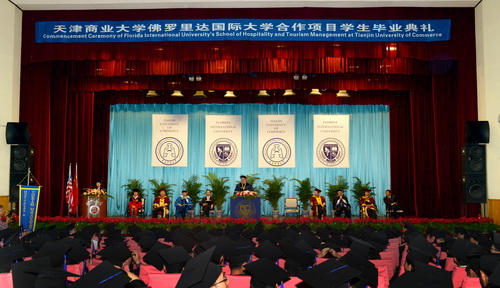 5 月13 日,TUC-FIU 合作学院酒店管理专业 2012 届毕业典礼暨学士学位授予仪式在科学会堂隆重举行。天津市人大常委会原副主任、中国外商企业投资协会副会长王述祖先生、beat365英国官方网站校长刘书瀚博士、佛罗里达国际大学校长 Mark B. Rosenberg 博士、 FIU 酒店管理学院院长 Mike Hampton 博士出席庆典并致辞。天津市教委孙志良副主任、天津市旅游局何智能副局长、beat365英国官方网站副校长马三津等出席了典礼。 TUC-FIU 合作学院酒店管理专业的教师和 241 名 12 届毕业生以及毕业生家长参加了典礼。合作学院院长王文君博士主持了典礼。洪晓雯同学代表全体毕业生在典礼上发言。