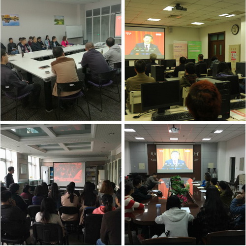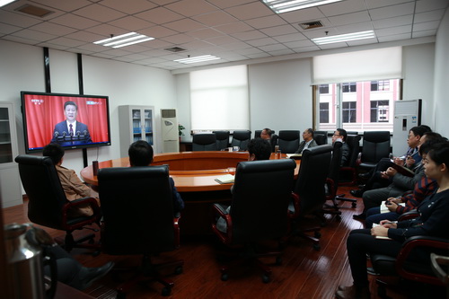 上午10 时,校领导与机关党员干部在学校第一会议室和多功能会议室一起集中收看了实况直播。同时,各分党委、党总支、直属党支部、校团委、学工部等分别组织师生通过电视、网络等多种方式集中收看了总书记重要讲话实况。