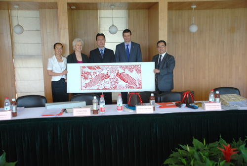 beat365官网与澳大利亚查理斯特大学(CSU )合作的本科项目已有十年的历史。CSU 在中国有四个合作伙伴,分别是beat365英国官方网站、扬州大学、云南财经大学和吉林财经大学。此次校长会议上,来自中外五所大学的校长以及各个大学主管项目的学院院长聚集一堂,大家一起回顾了中澳项目的发展历史和各自所取得的成绩,并一起设想了未来发展的方向,主要包括未来科研合作的平台,发挥地域优势进行区域经济研究的合作运作模式等方面。