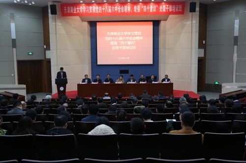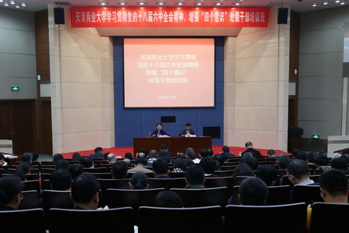 按照市委部署,11月18日下午,19日全天,学校举办学习贯彻党的十八届六中全会精神、增强“四个意识”处级干部培训班。校党委书记史习红出席并讲话。校党委副书记、校长葛宝臻主持。校党委原书记陈学奇出席。校领导卫克武、路波、邱立成、刘革生、齐恩平、李炜出席。