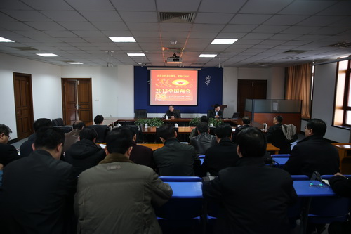 会上,校党委副书记杨万义就进一步传达学习全国两会提出要求。一是要把学习全国两会精神与学习贯彻党的十八大精神结合起来。各单位要在近期组织一次理论学习,传达全国两会精神。二是要把学习全国两会精神与推进学校今年的重点工作相结合。要按照2013 年党政工作要点的要求,落实好校党委工作部署,不断深化学校的内涵建设、学科建设、创新能力建设,提高学校国际化办学水平,推动学校今年的工作再上台阶。三是要把学习全国两会精神与进一步改进工作作风结合起来。各级党组织要认真落实学校关于改进工作作风的文件精神,转变作风、端正学风、改进文风,全面扎实推进学校各项工作。