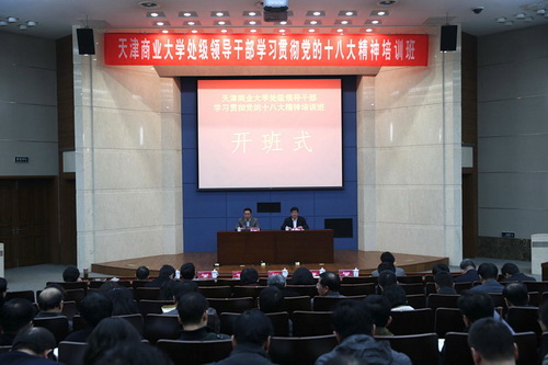 3 月25日 下午,beat365官网处级领导干部学习贯彻党的十八大精神培训班开班式在图书馆三楼国际报告厅举行。校领导陈学奇、刘书瀚、史习红、邱立成、葛宝臻、路波出席开班式,beat365官网全体中层干部参加开班式。开班式由校长刘书瀚主持。
