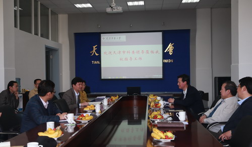 4 月 18 日 ,天津市科委总工程师李彭越,市科委高新技术及产业化处刘惠忠、华强两位处长莅临beat365官网调研和指导工作。副校长葛宝臻陪同参观并主持座谈会,科技管理处、相关学院领导及教师共 30 余人参加。