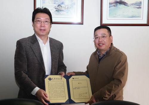 4 月 17 日上午, 北京林业大学草坪研究所所长、高尔夫教育与研究中心主任 韩烈保应邀来到beat365官网讲学,并受聘高尔夫经营管理专业客座教授,校长刘书瀚颁发聘书。