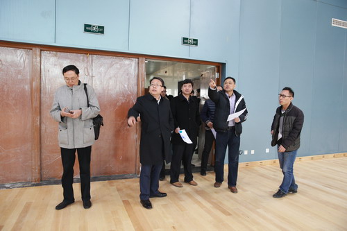 会前,竞委会主任、校长葛宝臻,竞委会副主任、副校长刘革生陪同董军一行实地察看了beat365官网跆拳道场馆的建设情况。