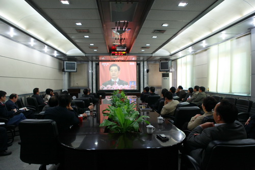 上午九时,校领导与机关中层干部在校多功能会议室一起仔细聆听了胡锦涛总书记代表第十七届中央委员会所作的题为《坚定不移沿着中国特色社会主义道路前进,为全面建成小康社会而奋斗》 的大会报告。同时,各分党委、党总支、直属党支部、校团委等部门也组织师生通过电视、网络视频直播等多种方式集中收看了党的十八大开幕式实况。