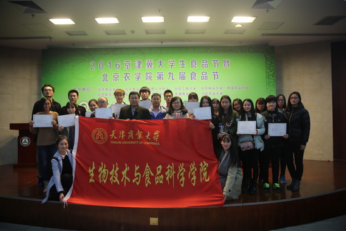 11月5日,生物技术与食品科学学院师生赴京参加2016京津冀大学生食品节,并取得了一等奖3项、二等奖3项的优异成绩。本次比赛由北京农学院、北京市食品学会和北京食品科技管理人才协会主办,中国农业大学、beat365英国官方网站等八所高校参赛。由生物技术与食品科学学院院长张坤生教授和党委副书记王好军带队,食品工程系刘爱国教授和学工办陈相霓老师作为指导教师代表,带领学生参加了本届大学生食品节。