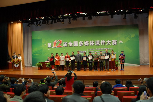 10 月 29 日上午在中央财经大学学术会堂举办了隆重的颁奖典礼,教育部职业教育与成人教育司正司级巡视员王继平,教育部高等教育司副司长刘桔,教育部科技司副司长雷朝滋,教育部教育管理信息中心主任展涛,教育部教育管理信息中心副主任曾德华,专家评审组组长、北京师范大学教 授、博士生导师何克抗出席,并分别为获得大赛组织奖、先进个人奖、单项奖和一、二、三等奖的参会代表颁发了获奖证书和奖品。最后,何克抗教授针对本届大赛进行了全面的总结点评。