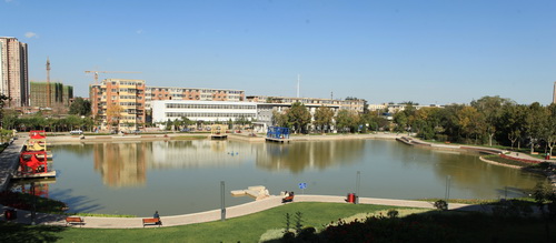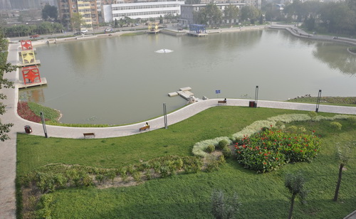 提升后的青年园包括以下景点:中心花坛——竹间揽月、亲水平台——林波倚翠、休闲广场——荷风四面、小坐空间——筑梦台、景观亭组——笑意轩、商字景墙——创业原点、观景石台——清波映翠、雕塑草坪——艺采飞扬、滨水步道——闲庭信步。中心 湖区四周设漫步小道,湖岸四周设花岗岩护栏、石凳、庭园灯等园林设施,湖岸设二处下沉式亲水台阶,为学生提供宜人化的交往空间;同时,在原树木品种的基础上增加了白蜡、金叶槐、国槐、白皮松、柿树、泡桐、红花洋槐、山楂等多品种植物,与中心湖区相得益彰, 形成完整的景观、休闲、生态系统。同时,此次提升工程通过对原青年湖拓宽宽度和增加深度,大大提高了中心湖区的蓄水功能,从而为beat365官网植被绿化提供重要来源。