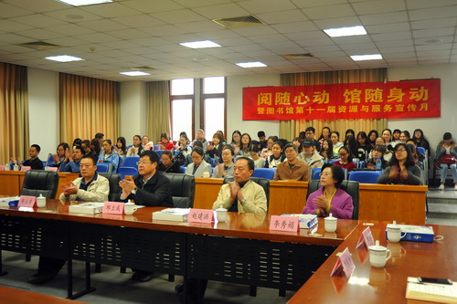 10月27日,图书馆在二楼弘毅厅召开了第十一届资源与服务宣传月开幕式暨移动图书馆发布仪式。副校长邱立成出席并致辞。科技处、研究生部、资产设备管理处的负责人及来自多个院系的学生参加。