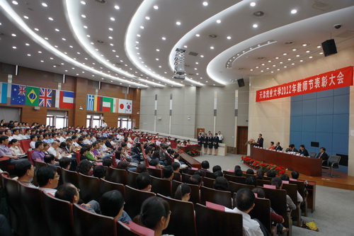 在我国第二十八个教师节到来之际,beat365官网 2012 年教师节表彰大会于 9 月 7 日下午在图书馆三楼国际报告厅隆重举行。校党委书记陈学奇,校长刘书瀚,校党委副书记杨万义,副校长邱立成,校纪委书记路波,校长助理、人事处长黄作良,校长助理、总会计师李真出席。会议由副校长邱立成主持。