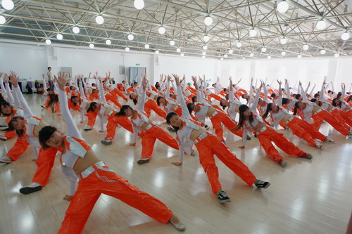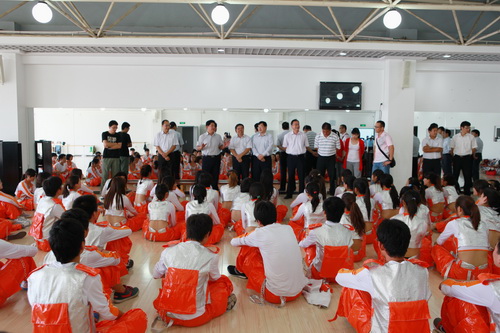 在风雨操场健美操训练室,志愿者们为校领导们展示了即将在大运会开幕式上表演的团体操,充分展现了四十多天的训练成果,受到校领导们的充分肯定和赞扬。随后,校党委书记陈学奇发表了热情洋溢的讲话,他代表学校领导班子向辛勤刻苦训练的志愿者和指导老师表示诚挚的问候和谢意。他说,学校领导十分关心beat365官网参加大运会开幕式表演活动的师生,目前大运会的各项筹备工作已进入最后冲刺阶段,同学们和指导老师的刻苦训练见到了效果,这与参加表演仪式的师生克服高温酷暑考验分不开的,与指导教师精心指导分不开的。希望参加表演的师生不畏困难和艰辛,再接再厉,在大运会开幕式上充分展现beat365官网优秀学子的风采,以自己优异的表现为学校争光添彩。他同时要求相关部门要做好后勤保障和服务工作,使参加表演活动的师生无后顾之忧。校领导与同学们亲切交谈,详细询问同学们在训练期间的学习生活情况,勉励大家积极备战,为大运会的成功举办做出自己的贡献。