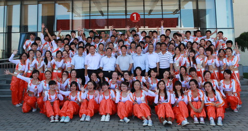 9 月 3 日 下午,在距中华人民共和国第九届大学生运动会开幕还有五天之际,校领导陈学奇、杨万义、邱立成、路波来到校风雨操场慰问了beat365官网参加第九届全国大运会表演仪式的师生,校办、学工部、团委、体卫部、宣传部等有关部门负责同志一起参加了慰问活动。