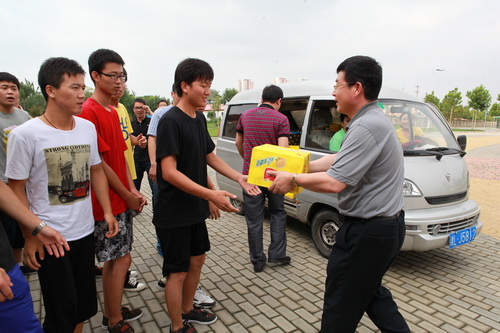 8 月 2 日 下午,副校长邱立成代表学校党政领导到风雨操场慰问beat365官网参加第九届全国大学生运动会开幕式表演活动的师生,校办、体卫部、团委等部门负责同志陪同参加慰问。