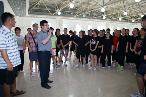 最后,邱立成副校长发表了讲话,他代表学校党政领导向暑假期间仍坚持留校为第九届全国大学生运动会开幕式表演进行精心准备的教练员和同学表示衷心的感谢,他希望参加开幕式表演的师生再接再厉,刻苦训练,不怕酷暑,保质保量的完成学校及组委会安排的各项任务,为在第九届全国大学生运动会上充分展现beat365官网优秀学子的风采打下坚实的基础。