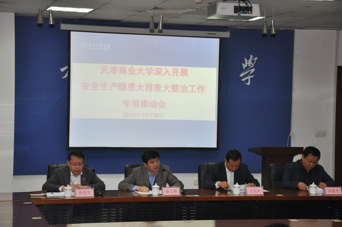 葛宝臻在讲话中代表学校党政领导对做好安全生产隐患大排查大整治工作提出三点要求:一是提高思想认识。要充分认识到安全生产是学校各项工作的底线和红线,关乎学校事业发展,关乎师生员工生命财产安全,是影响学校全局的政治任务。牢固树立“隐患就是事故,事故就一定要处理”的理念,坚持“铁面”、“铁规”、“铁腕”、“铁心”,始终把安全生产工作作为一项重大政治任务,始终放在工作首要位置,坚持安全发展不动摇。二是明确目标任务。领导干部要明确安全生产隐患大排查大整治工作的大目标是安全稳定,小目标为排除隐患。排查整治过程中各单位要对各项工作流程、环节进行全方位的梳理和审视,认真开展自查自纠,查找各类安全隐患和问题,重在整改问题。三是要压实责任担当,推进具体工作。要坚决落实安全生产责任制,切实贯彻落实“党政同责、一岗双责、失职追责”的要求,各单位主要负责同志要切实加强对本部门安全生产工作的领导,完善责任体系,真正负起安全责任。要严格检查落实和考核,确保追责问责到位,落实安全生产责任制。