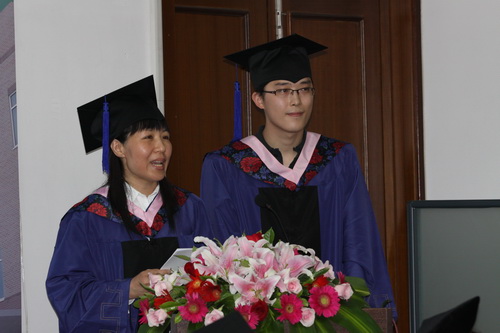 毕业典礼上,第六届硕士班毕业生代表王勇剑、安洋分别用中、英文发表了题为“豁然朗拔 通济敏悟”的毕业感言,描述了从他们刚入学到今天步入毕业典礼礼堂的点点滴滴,在场的领导和嘉宾无不为之感动。刘书瀚校长对毕业生的感言做出了高度评价。
