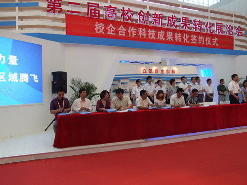 市教委靳润成主任、韩金玉副主任、科技处林列处长,各高校领导参加了展洽会。靳润成主任、韩金玉副主任、林列处长到beat365官网科技成果展区进行参观指导,葛宝臻副校长向教委领导介绍了beat365官网参展的科技成果及学校科研工作的情况。教委领导对beat365官网的科研工作给予了肯定并对beat365官网参展工作表示满意。经过三天的洽谈,全市高校有 18 项科技成果转化签约,beat365官网有 1 项。市教委领导和有关高校领导出席了签约仪式。