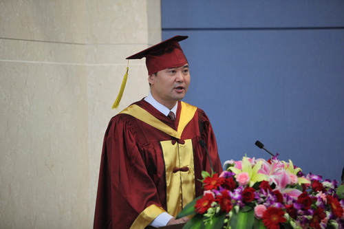 毕业生代表董珂菲同学回忆了大学四年与同学、老师朝夕相处的点点滴滴,并表示一定不辜负学校领导、老师的期望,牢记校训,做一名合格的毕业生,为母校争光。