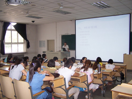 金色融域会展公司是天津市专业从事展览展示、礼仪庆典服务的重点企业之一,拥有与天津市数十家单位合作的经历,提供高品质的天津展览展示与会议、节庆服务,目前已有 150 余名员工。总经理冯东健从会展人的职业生涯规划、会展公司对人才素质的要求、会展公司运营的案例以及金色融域会展公司的概况四个方面和会展专业的学生进行了面对面的交流。冯总指出,由于会展业是以创意、创新为重要特点的现代新型服务业,所以会展公司在运营过程中最需要有主见、爱思考、擅表达的人才,作为一名未来的会展人,需要时刻让自己的思维处于活跃的状态,保持创新性。要做到这一点,就需要广大会展专业的同学做到:有明确目标、创新的意识、开阔的视野、扎实的作风和执着的精神。