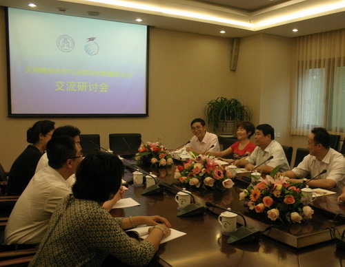 9 月 15 日下午,校党委副书记杨万义率外国语学院、校长办公室等有关部门负责人到天津对外服务总公司,与该公司总经理杨增坡、副总经理张盈和相关部门负责人商谈合作共建大学生实习就业基地事宜。双方本着资源共享,优势互补,相互协作,相互支持,互惠互利,共同发展的原则,就共同建设大学生实习就业基地的相关事项达成共识。双方认为,充分发挥校企各自的优势,在就业招聘、产品研发、成果转让、技术培训等方面双方有着广泛的合作空间。双方表示将积极探索校企联合培养复合型应用人才的新模式,构建适应企业发展需求的人才输送渠道。经过商议,双方拟在 9 月底签订共建大学生实习就业基地合作协议书。