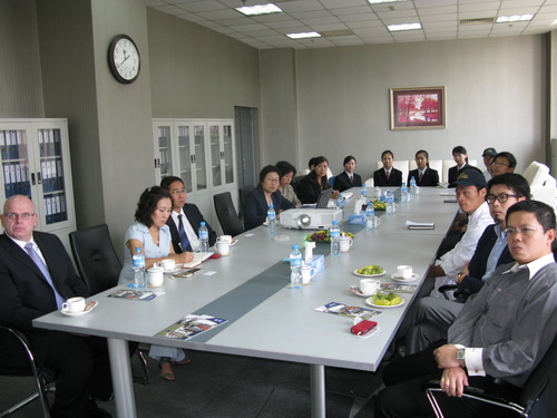 李威豪和黄先生在合作学院领导的陪同下参观了学院,并在参观过程中与正在上课的同学及外籍教师进行了交流。随后,双方针对校企合作及人才培养进行了会谈,合作学院的部分学生也参加了此次会谈。会上,院长王文君向来访客人介绍了合作学院的整体情况及现有的校企合作模式。李威豪先生介绍了希尔顿集团及希尔顿酒店管理有限公司的现状及未来的发展趋势,希尔顿酒店管理有限公司目前在中国有21 家酒店,很快将再建95 家,同时他们将在拓宽欧洲市场,开发具有中国特色的文化型酒店,所以对于符合企业要求的国际酒店管理人才的需求量急剧增加。李威豪先生还表示合作学院已在业界享有很高的声望,毕业生深受企业好评,所以非常希望与合作学院建立紧密的合作关系。会上,学生代表也畅所欲言,与两位老总进行了交流与沟通,同时也提出了一些在实习及就业中的问题与困惑,李威豪先生针对这些问题一一做了解答,并鼓励学生通过刻苦的学习和积极的锻炼来积累知识与经验,不断提高自身素质,加深对酒店行业的正确认识,拓展视野和职业空间,他相信在学院及企业的共同努力下,在不久的将来会诞生更多更优秀的酒店业管理新星。