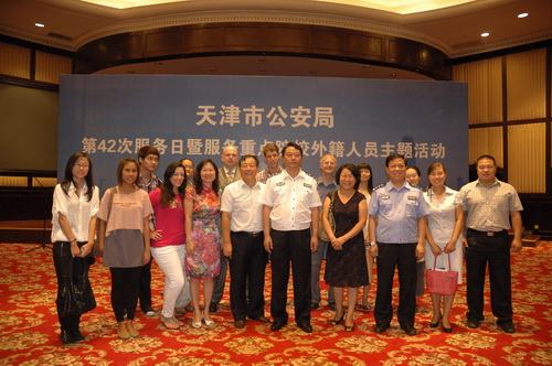 “ 重点高校外籍人员服务日 ” 活动是天津市公安局近期在全市范围内组织开展的 “ 津城百姓评公安 ” 活动的一个重要环节,旨在全面推进天津市和谐警民关系建设。活动中天津市公安局领导和市公安局交管局、消防局、刑侦局、经保处、出入境管理局、经侦总队、户政处、治安总队的有关负责同志现场为我市高校外籍专家和留学生解答各类问题并提供相关服务。活动现场气氛热烈,各院校专家、留学生畅所欲言。活动中,外国留学生代表即兴演唱了优美的中外歌曲,表达了外籍人士对公安系统工作人员辛勤工作的感谢之情。