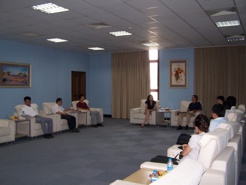 7 月 13 日 下午,天津国展中心股份有限公司张兵副总经理、国展中心顾问、原中国贸促会天津分会副会长夏慕禹先生,天津元景会展有限公司马文起总经理、总经理助理张欣先生、搜科网运营经理赵韵雅女士,天津市工商联化学试剂商会官志明先生等来到beat365英国官方网站公共管理学院,就会展经济与管理专业学生实习基地、教师实践基地建设、会展项目研发等合作事宜进行了深入洽谈,并与会展专业学生进行了交流。教务处曹军副处长、公共管理学院党委白洪文书记、院长孙钰教授、教学副院长李增田博士、会展系党支部书记姜仁良博士、系主任杨琪博士及会展系老师参加了本次活动。
