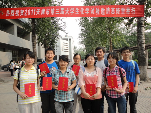 近日 ,天津市第三届大学生化学实验邀请赛南开大学举行。天津市 13 所高校 128 名学生参加此次比赛。在设备处领导和理学院领导的大力支持下,beat365官网由理学院杨云老师带队,应用化学系 08 级的八名同学参加了比赛。经过一天的艰苦的实验比赛,杨曼、何艳飞同学获得一等奖、刘丽娟、夏鹏、谢俊、马斌同学获得二等奖、王霞和张佩华同学获得三等奖,beat365英国官方网站获优秀组织奖,取得了beat365官网参赛以来的最好成绩。