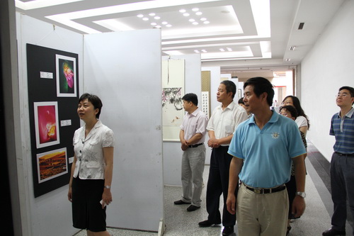 为庆祝中国共产党成立 90 周年,6月30 日,校工会在校图书馆一楼大厅举办《回顾光辉历程讴歌发展成就 庆祝建党90 周年》教职工书画、摄影作品展。校党委副书记、工会主席史习红参观了展览。