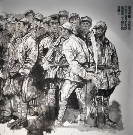 艺术学院全体师生积极参加此次书画展,特别是青年教师和学生的积极性更为高涨。其中,青年教师赵宏伟作品《大红》,以抽象的绘图手法,赋予中国传统的吉祥色“红色”一种崭新的生命力和表现力,与建党主题遥相呼应;新报到教师尹维娜作品《无穷动》,将色块与毛主席诗词相结合的独特构思,传达出党与时代脉搏紧密联系的先进思想; 09 级学生梁萌作品《随景》描绘的是海浪拍打岩石而形成的巨大浪花,浪花形态考究,仿佛从岩石中喷薄而出,象征着伟大中国共产党的恢宏气势。此次书画展还展出了部分师生在天津市文学艺术界联合会、共青团天津市委员会、中共天津市委支部生活社等单位主办的“辉煌历程 伟大丰碑——庆祝建党 90 周年大型采风美术创作作品展”中荣获入围奖的画作。例如:青年教师梁健作品《无名英雄》,歌颂了默默耕耘,无私奉献的崇高革命精神; 08 级学生刘波作品《浴血》,取材于战场上的革命战士浴血奋战的形象,气势恢宏,鼓舞人心。