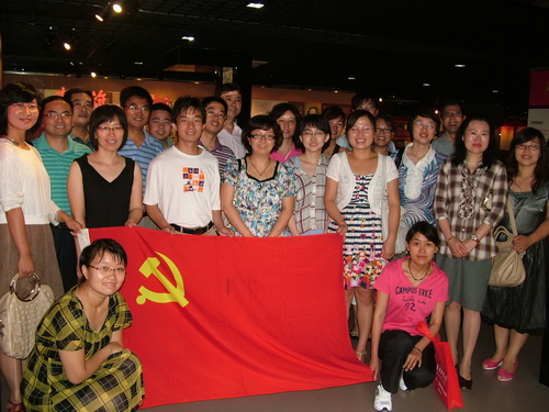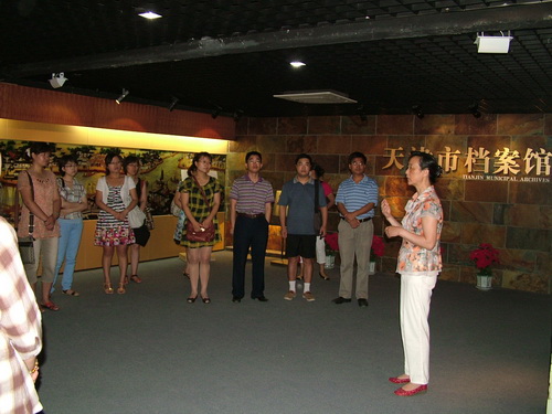 在天津市档案馆,广大教职工党员参观了《党旗飘飘——庆祝中国共产党成立 90 周年馆藏档案资料图片展》和《天津城市记忆展》。 《党旗飘飘 --- 庆祝中国共产党成立 90 周年馆藏档案资料图片展》,以时间发展为主线,分为“为实现民族独立和人民解放而英勇斗争”、“为建设社会主义新中国而艰苦奋斗”、“为实现社会主义现代化而开拓创新”三个 专题 。展览以图文并茂的形式充分展现了不同历史时期天津 90 位优秀共产党员先进事迹。