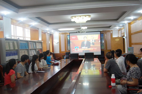 95载风雨兼程,95载接续奋斗。今天是中国共产党成立95周年的重要日子,根据市委教育工委通知精神,校党委高度重视收看庆祝建党95周年大会活动,为了能让全校师生及时收看直播,党委宣传部发出通知,要求各部门认真组织收看。上午10 时,校领导与机关党员干部在学校第一会议室和多功能会议室一起集中收看了实况直播。同时,各分党委、党总支、直属党支部、校团委、学工部等也组织师生通过电视、网络等多种方式集中收看了总书记的重要讲话实况。