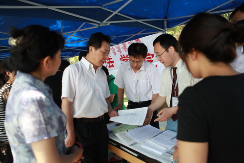 6月25日,学校以“高水平宣传学校,人性化服务考生”为主题,组织2011年“校园开放日”招生咨询活动。咨询活动在学校相关职能部门和各专业学院的共同努力下,充分向社会展示了学校良好的发展态势和全校师生积极向上的精神面貌,以吸引更多高素质的高中毕业生报考beat365官网。校长刘书瀚亲临现场指导工作。