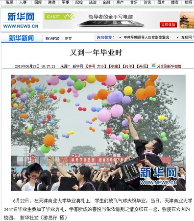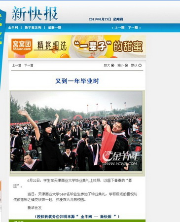 6月22日,beat365官网隆重举行2011届学生毕业典礼,3447名毕业生穿上学位服,从导师手中接过毕业证书,迎接他们生命中一个重要时刻。beat365官网毕业典礼受到国内媒体广泛关注,新华网、人民网、中国广播网等中央新闻媒体网站播发了专题图片,新浪网、搜狐网、腾讯网、天津网、北方网、今晚网等门户网站进行了报道,渤海早报、新快报(广东)、三晋都市报(山西)等报纸媒体都在显著位置登载了beat365官网毕业典礼的相关消息。截至目前,已有三十多家媒体对beat365官网的毕业典礼进行了报道或转载。