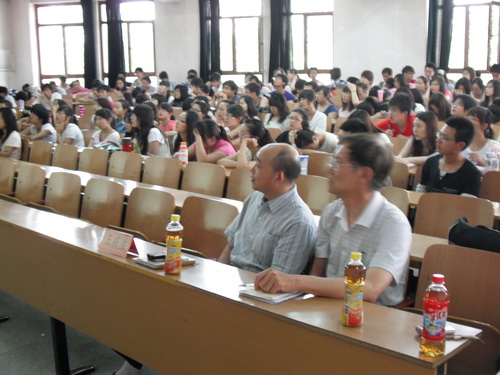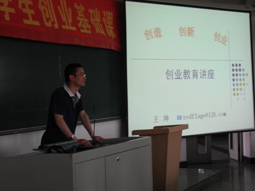 本学期商学院创业基础课面向商学院2009级共计858名学生,结合商学院学生知识构成和自身特色,从不同层面、不同角度策划组织共计四次讲座。其中,包括4月13日,组织观看“成功人士、知名企业家创业经验谈”影音资料;4月27日,工程管理系2008届校友、天津众安泰房地产经纪有限公司董事长许磊磊回校谈创业经验;5月11日,优秀在校生创业典型、天津天之骄子文化传媒有限公司秘书处秘书长、商学院学生会主席丁琳谈创业体会; 6月1日,商学院优秀青年教师王坤主讲创业指导讲座暨结课仪式。