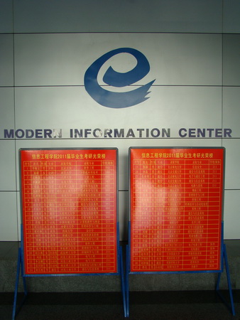 近日,信息工程学院在信息交流中心一楼推出 2011 届毕业生考研光荣榜。