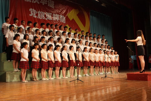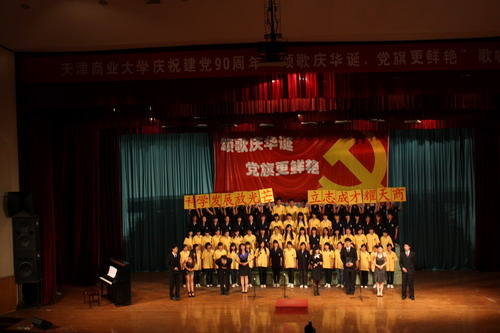 5 月 25 日 下午,由校团委主办的“颂歌庆华诞,党旗更鲜艳”庆祝建党 90 周年歌咏比赛在科学会堂举行。校工会副主席柴桐、校团委副书记兼星海艺术团指导老师严慧菁、星海艺术团指导老师张富生、校团委组织部部长兼beat365英国官方网站学生会秘书长梁强、教师合唱团郭强出席活动并担任本次比赛评委。