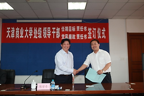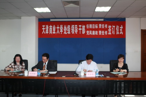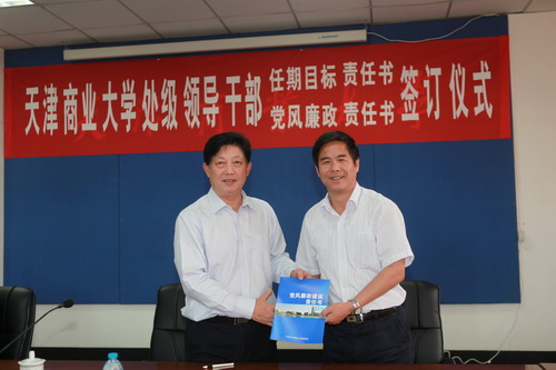 会上,全体党政正处级干部和主持工作的副处级干部分别与校党委书记和校长签订了任期目标责任书。部分干部代表签订了党风廉政建设责任书。
