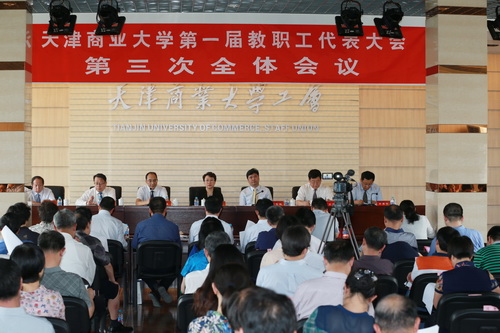 5 月25 日下午,beat365英国官方网站第一届教职工代表大会第三次全体会议在教职工文化中心多功能厅召开。校领导史习红、葛宝臻、路波、邱立成、刘革生、齐恩平出席。