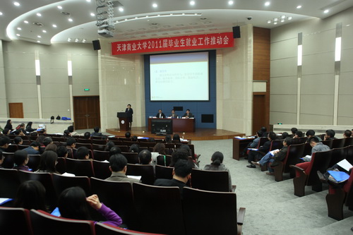4 月 8 日 上午, 2011 届毕业生就业工作推动会在图书馆三楼国际报告厅召开。校长刘书瀚、副校长邱立成、校纪委书记路波出席会议,会议由校纪委书记路波主持。刘书瀚校长做了题为“明确任务,扎实工作,全力以赴做好 2011 届毕业生就业工作”的讲话。学生处、教务处、教学质量监控中心、研究生部、科技处、社科处、团委负责同志 , 各学院党政领导、系主任、辅导员、毕业生班班主任参加会议。