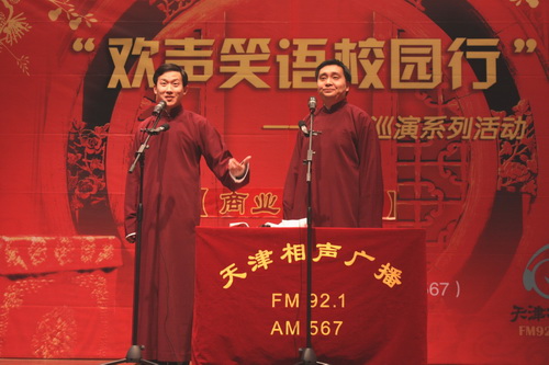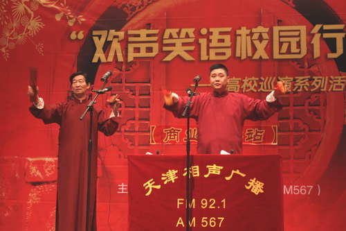 beat365官网是天津相声广播“欢声笑语校园行”高校巡演活动的重要一站,演出得到校团委和相关部门的大力支持,并作了充分的准备。这次相声专场传扬了中华民族的优秀传统文化,也为星海艺术团相声社的同学提供了一个与专业相声演员学习与交流的机会,对丰富beat365官网校园文化生活,加强学校内涵建设具有一定意义。
