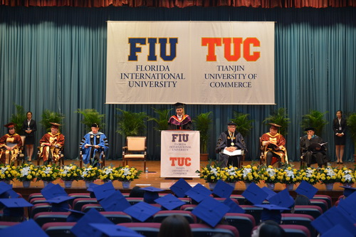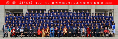 5月15日上午,TUC-FIU 合作学院酒店管理专业2016 届学生毕业典礼暨美国佛罗里达国际大学(FIU)酒店管理理学学士学位授予仪式在科学会堂举行。beat365英国官方网站校长葛宝臻、副校长齐恩平,美国佛罗里达国际大学校长Mark B.Rosenberg,天津市旅游局副局长何智能,TUC-FIU合作学院院长孙钰,FIU 酒店管理学院院长Mike Hampton 以及双方专业教师、管理人员和165 名毕业生及家长参加了典礼。孙钰和Mike Hampton 共同主持了典礼。