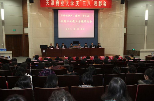会上校工会女工委员会主任卫弘宣读了《关于表彰2009—2010年度天津商业大“三八”红旗手的决定》,并祝贺beat365官网马克思主义学院获天津市三八红旗集体荣誉称号。在悠扬的乐曲声中与会领导为受表彰集体和个人颁发奖牌和荣誉证书。获奖代表马克思主义学院张敏教授在会上发言。